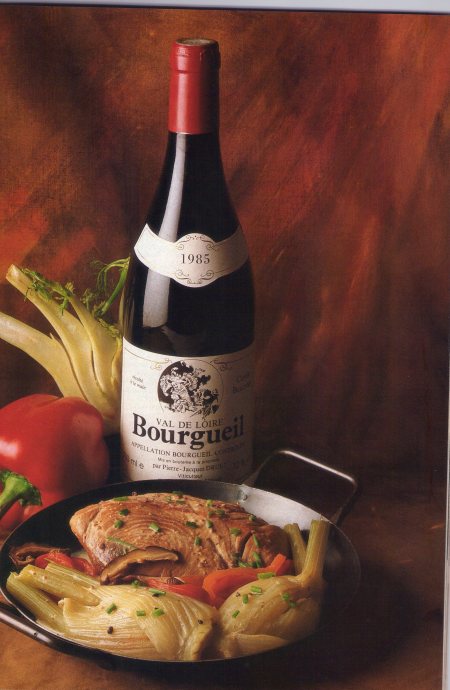 O tinto à base de Cabernet Franc mostra afinidade com o pimentão, a mostarda e os cogumelos, principalmente com alguns anos de garrafa. A erva doce enriquece a harmonização, mantendo um bom frescor final. A textura do atum e do próprio molho combinam com o corpo do vinho. Um Pinot Noir pode dar certo, desde que haja uma calibragem correta da textura do vinho. O problema são os toques herbáceos que não encontrarão eco neste tipo de uva.